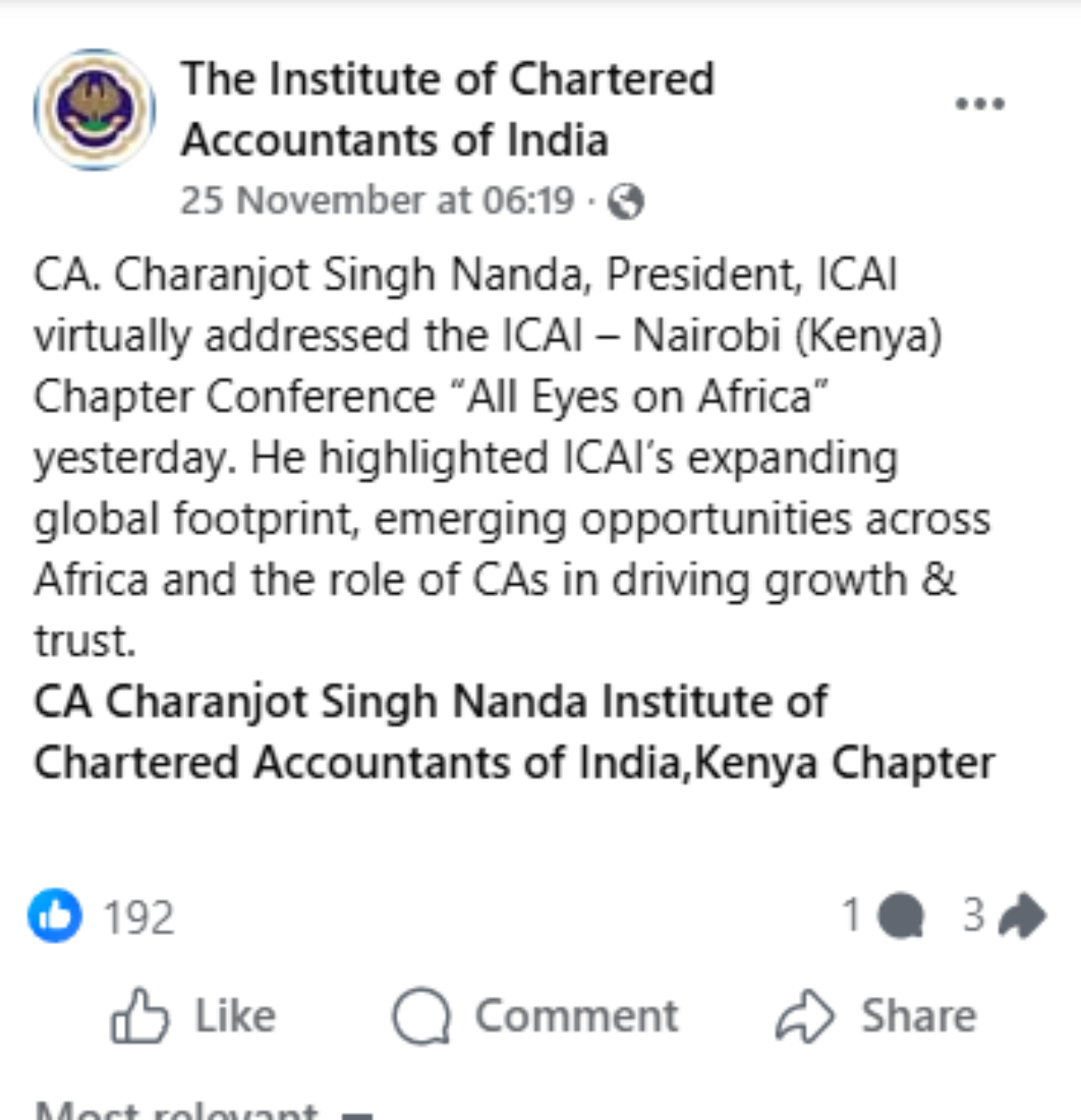 ICAI- Nairobi (Kenya) Chapter Networking Evening Report