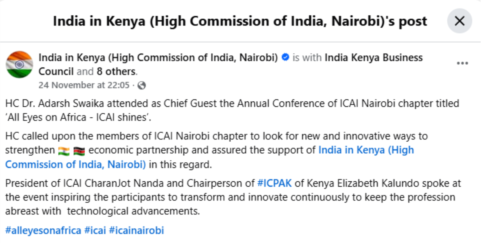 Strengthing the relationship between ICAI- Nairobi (Kenya) Chapter and Indian high Commission